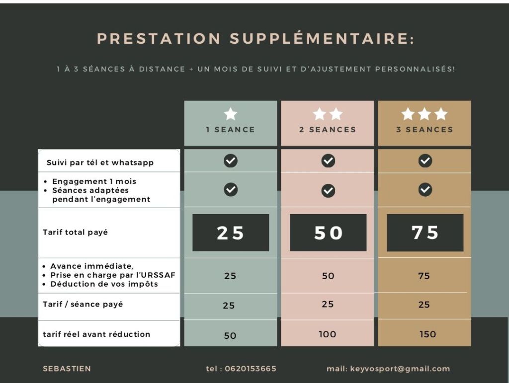 - Une séance vous est offerte pour toute personne de votre entourage qui s’engage sur un forfait de coaching.